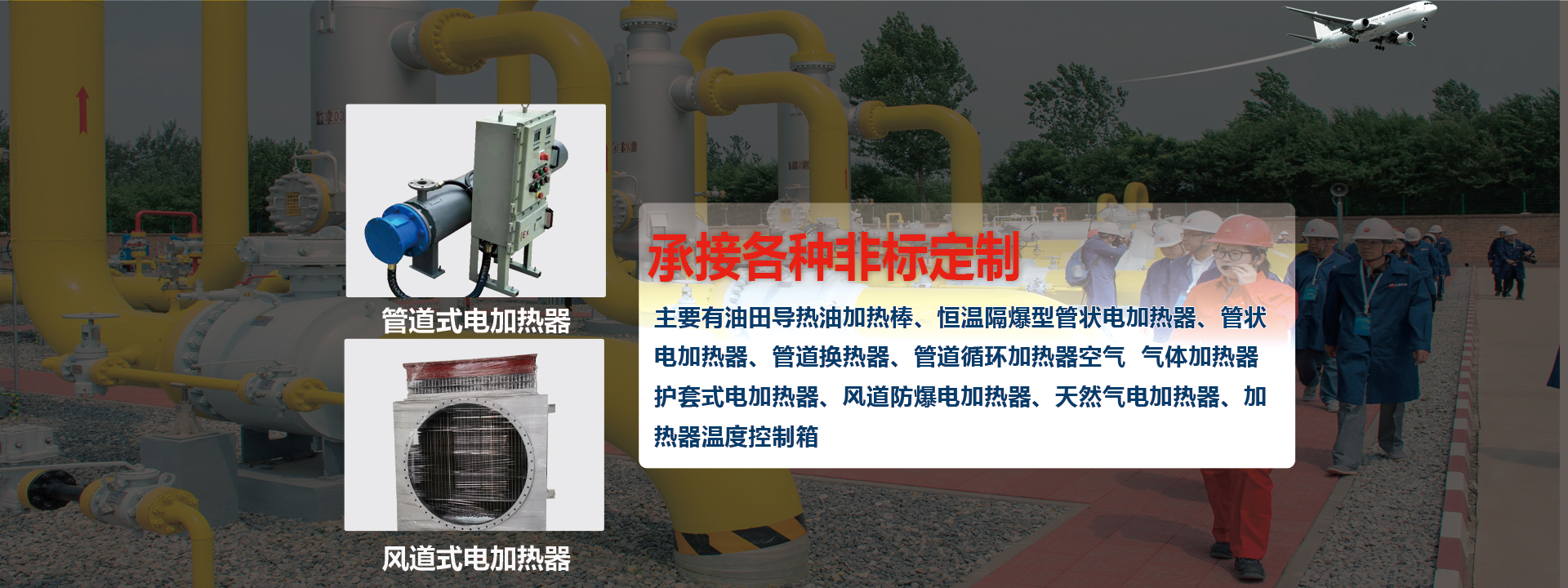 產品已廣泛服務于石油、化工、電力、核電、海上平臺、冶金、鐵路、船舶、機械等行業,對空氣、天然氣、氫氣、導熱油,重油等各種液氣體進行加熱和伴熱,均以使用壽命長、贏得了廣大用戶的信任。